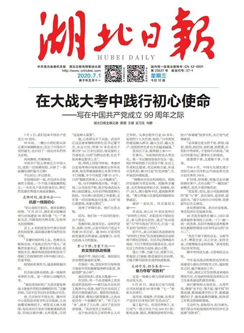 《湖北日报》写在中国共产党成立99周年之际|在大战大考中践行初心使命