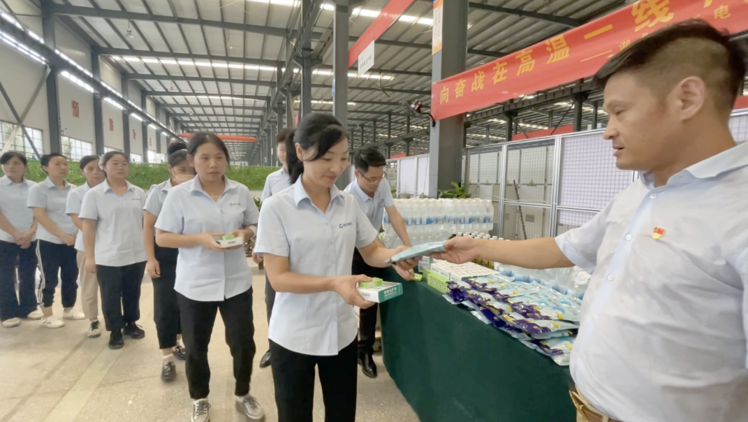 △为员工分发清凉物资