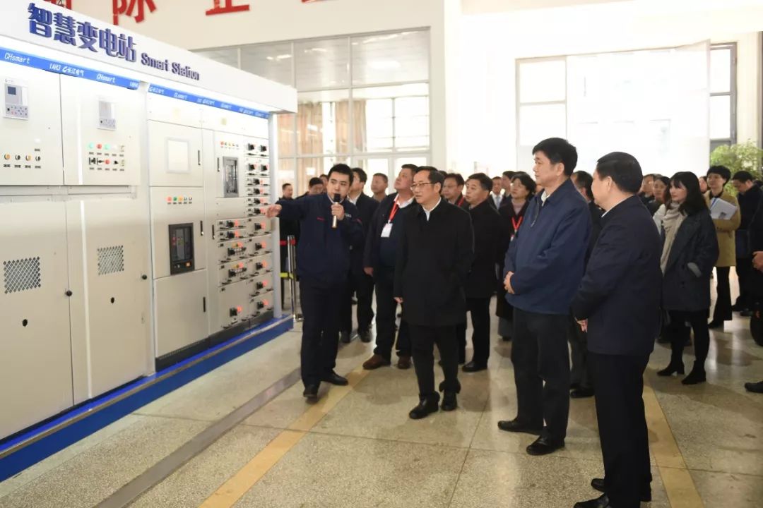 在长江电气智能车间,考察团一行参观了企业自主研发的智慧变电站,以及重大项目订单的生产情况。得知正是该智慧变电站,运用于世界最大单体机场航站楼的北京大兴国际机场等多个国家重点工程,考察团成员纷纷给予高度赞誉。