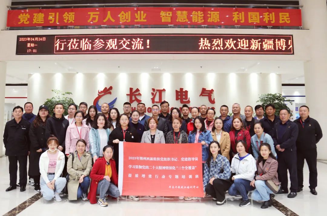 近日,新疆博州两新组织党组织书记学习贯彻党的二十大精神暨深化“三个全覆盖”提质增效行动专题培训班在湖北武汉正式开班,来自全市四个县(市)的两新组织党组织书记、党建指导员共40名学员参加培训,并于4月25日下午走进长江电气进行参观学习。 各位书记对长江电气“党建引领 行稳致远”的党建成果给予高度赞许...