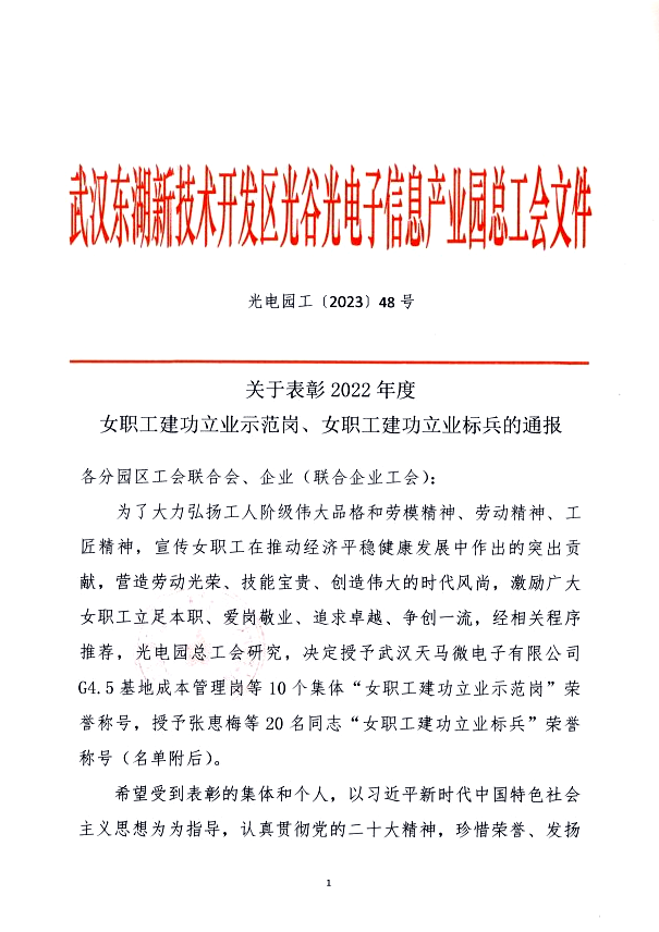 3月3日,武汉东湖高新区光电园总工会发布表彰通知,长江电气党办荣获2022 年度“女职工建功立业示范岗”荣誉称号。 长江电气党办始终在围绕中心、服务大局中主动作为,打造“红色电流 数智能量”党建品牌,使党建工作始终与企业发展同频共振。未来,长江电气将继续以习近平新时代中国特色社会主义思想为指导,认真贯...