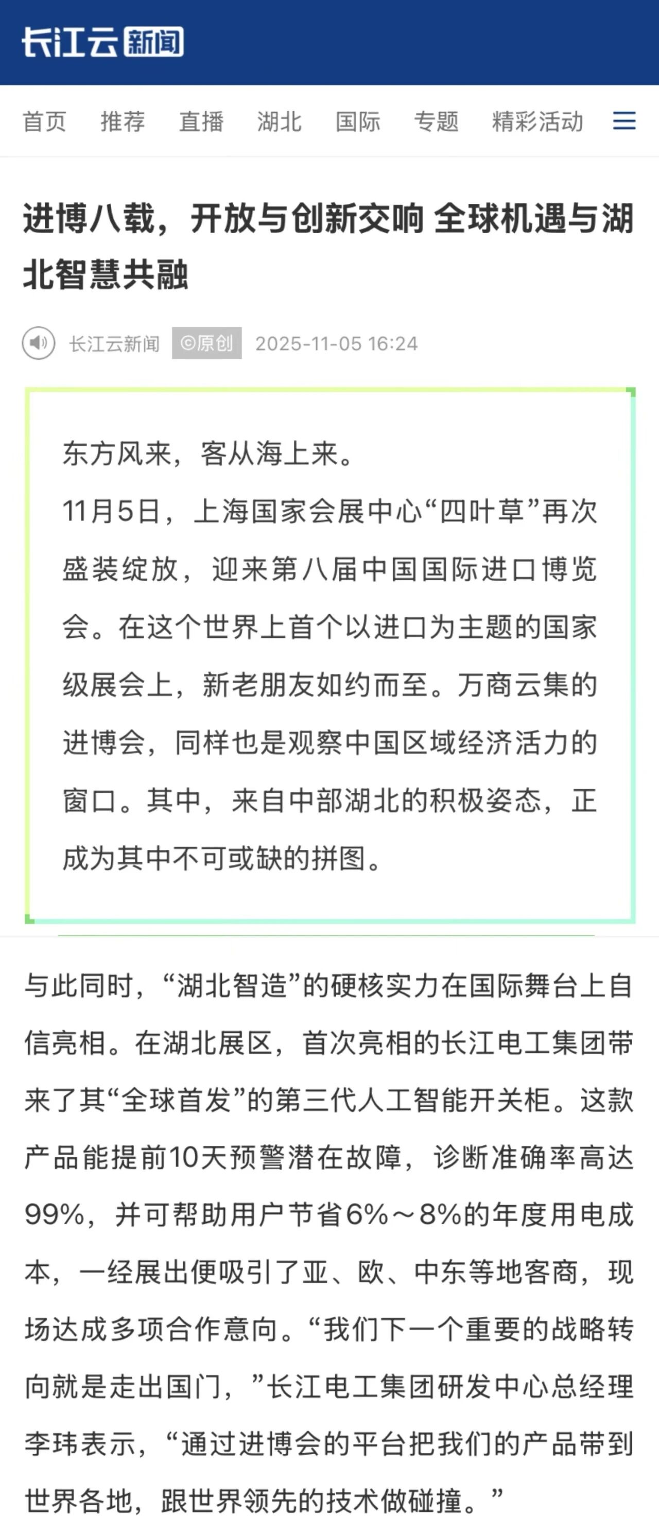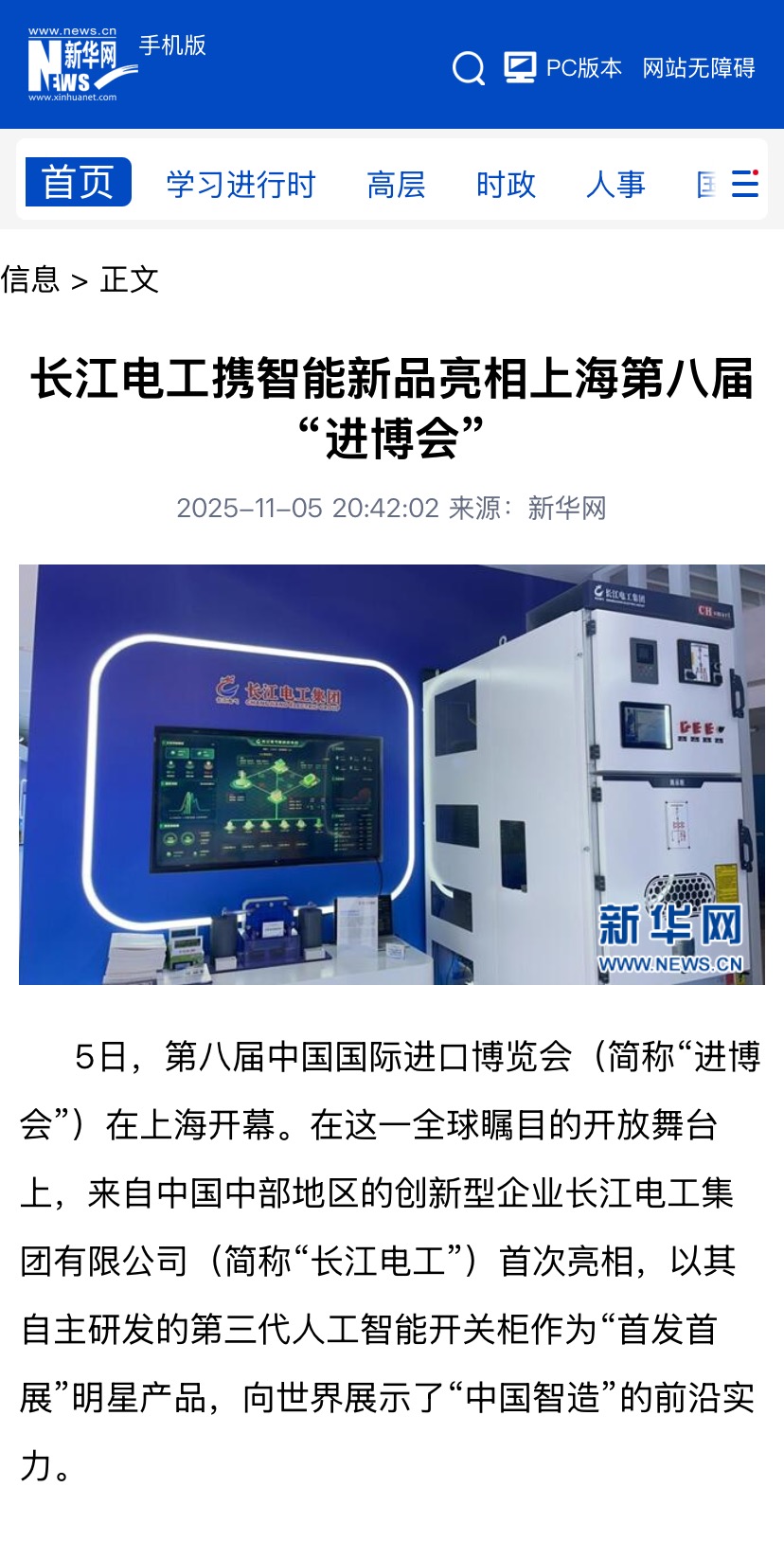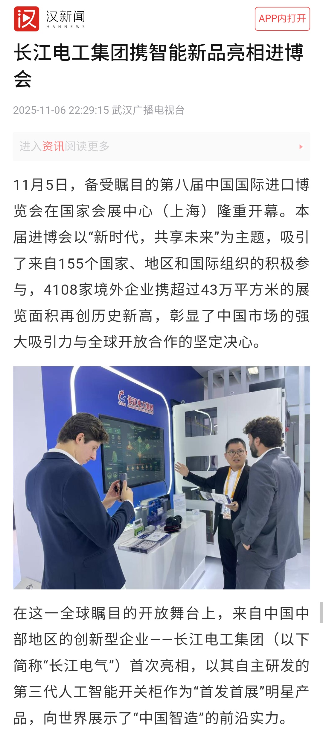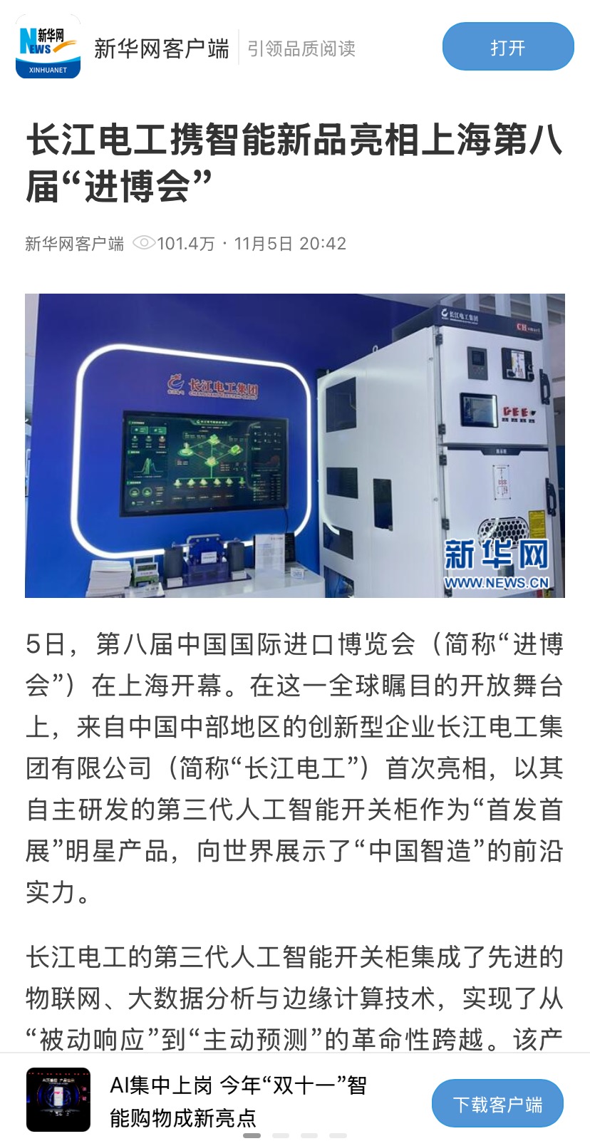 作为智能电网和新能源建设引领者,长江电工集团以“首发首展”的第三代人工智能开关柜为核心展品,携多款自主研发成果首次亮相进博会,吸引包含中央广播电视总台长运娱乐